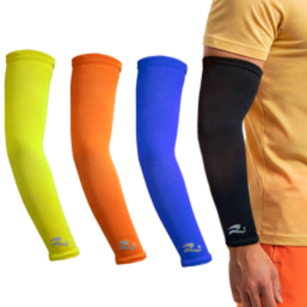 Todos os produtos são feitos com fio de Lycra e proteção solar. São três produtos com compressão moderada, elasticidade e toque gelado.